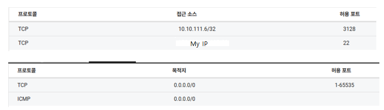 - Squid Proxy Server : Public Subnet, centos-7.8-64, 사설IP : 10.10.222.6, 공인IP