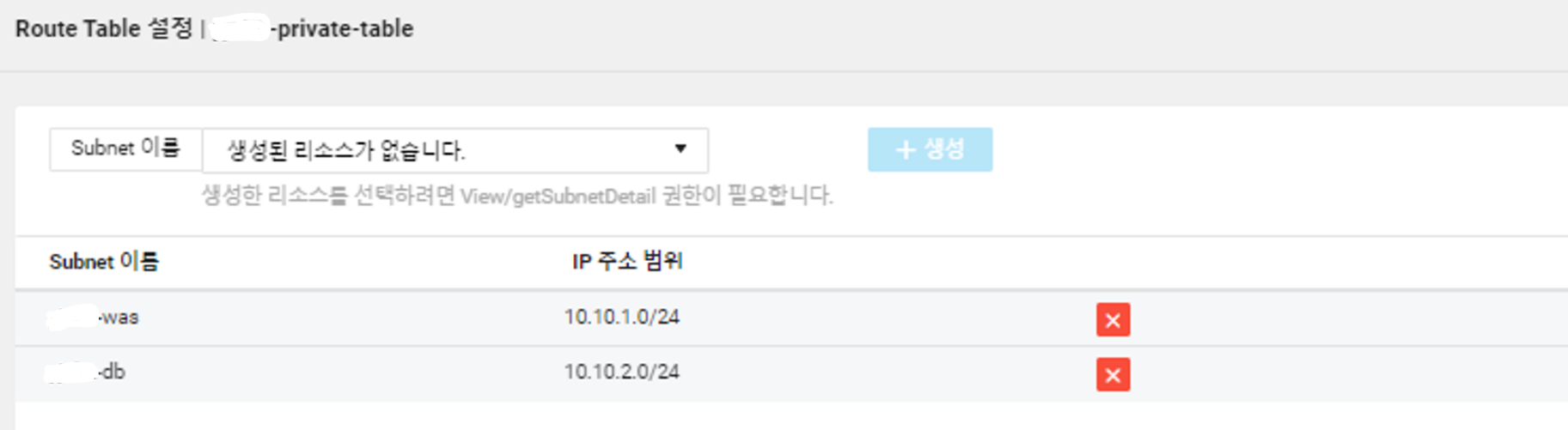 was : 10.10.1.0/24, Internet Gateway는 N (Private)