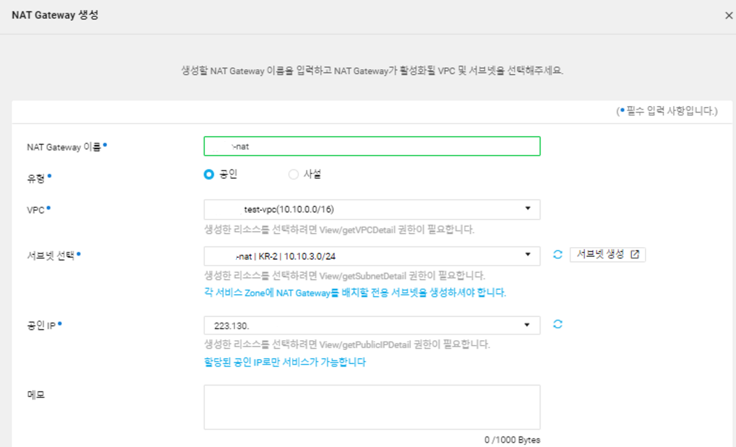 2. NAT Gateway 생성