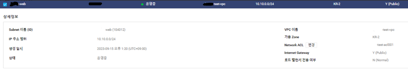 web : 10.10.0.0/24, Internet Gateway는 Y (Public)