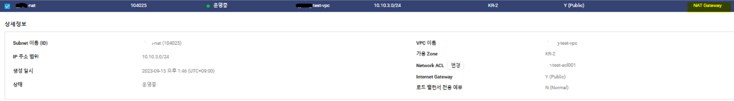 NAT gateway용 서브넷 생성 : 10.10.3.0/24, Internet Gateway는 Y (Public), 용도는 NAT Gateway