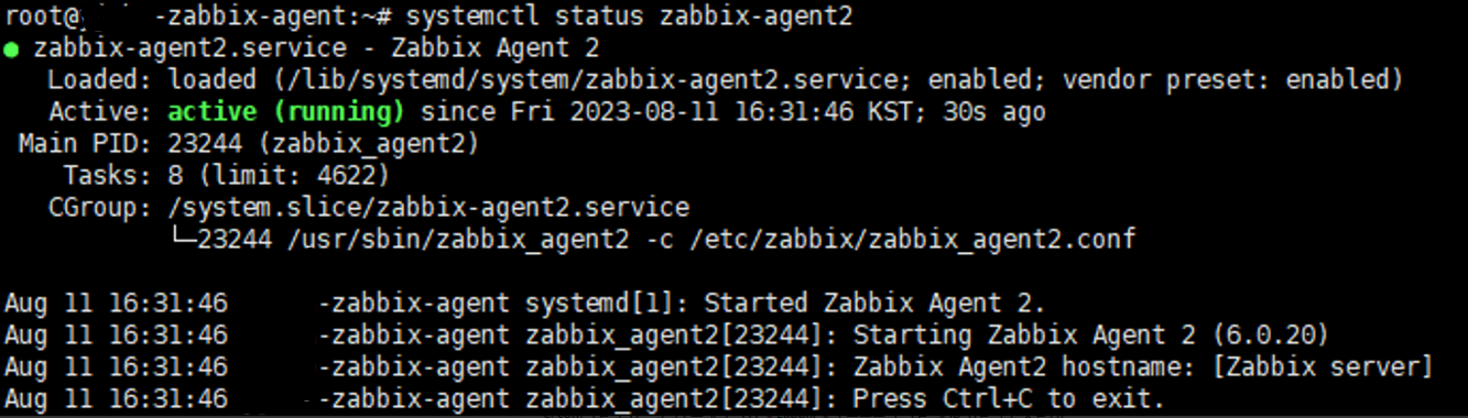 d. Zabbix agent2 ํ๋ก์ธ์ค ์์