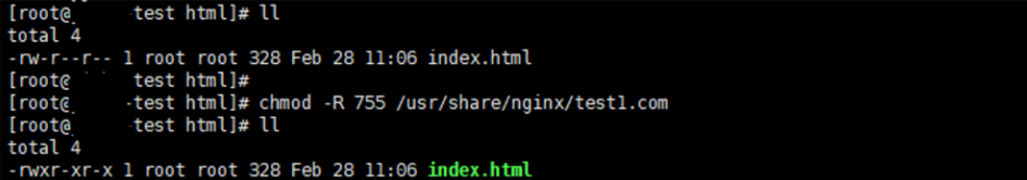# chmod -R 755 /usr/share/nginx/test1.com