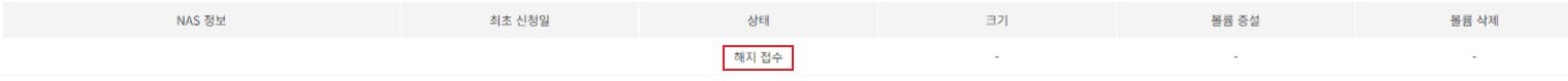 Offline NAS는 고객이 볼륨 삭제를 신청하면 '해지 접수' 상태가 되고, NHN Cloud에서 수동으로 삭제를 해줘야 최종적으로 '서비스 해지' 상태가 된다.