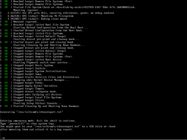 먼저 서버의 파티션 영역 마운트해준다. 그러면 /sysroot 디렉터리 내부에서의 모든 파일 경로가 시스템의 실제 루트 디렉터리로 간주된다.