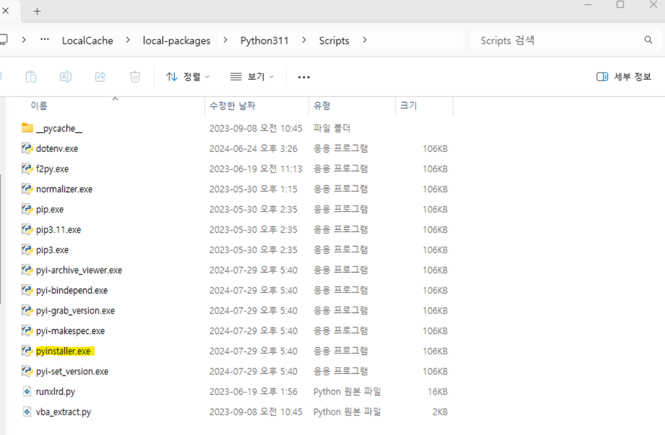 설치가 되어있는데도 해당 에러가 뜬다면 환경 변수 문제로 인해 PyInstaller가 시스템에서 인식되지 않은 경우이다. PyInstaller가 설치된 경로를 시스템의 PATH에 추가해 주자.