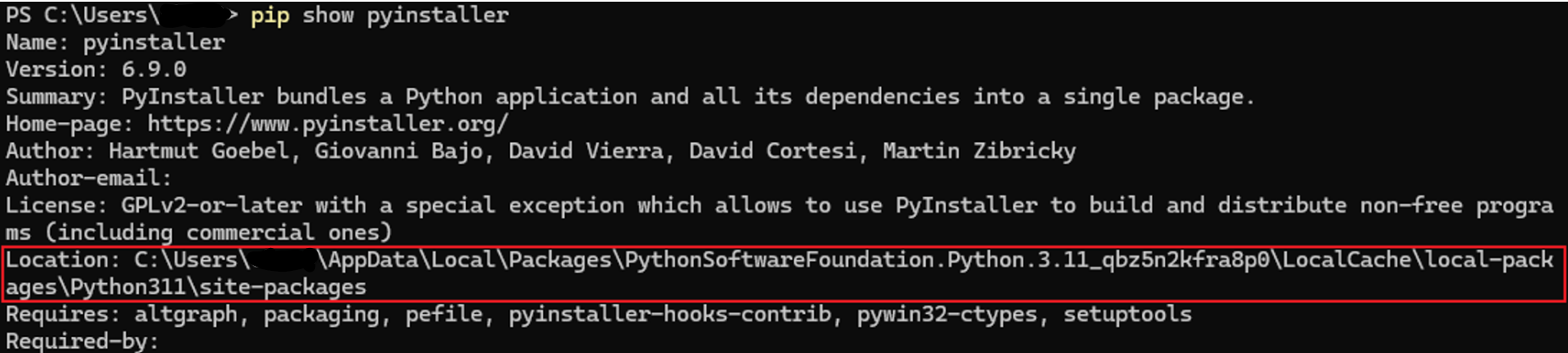 설치되지 않은 경우라면 아래의 명령어를 사용하여 PyInstaller을 설치해 준다.