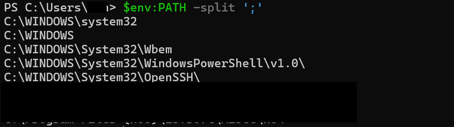PS C:\Users\user> $env:PATH -split ';'