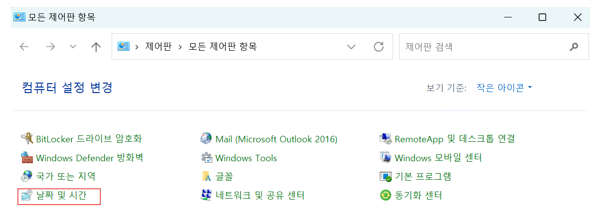 2) 윈도우 검색 : 제어판 > 날짜 및 시간