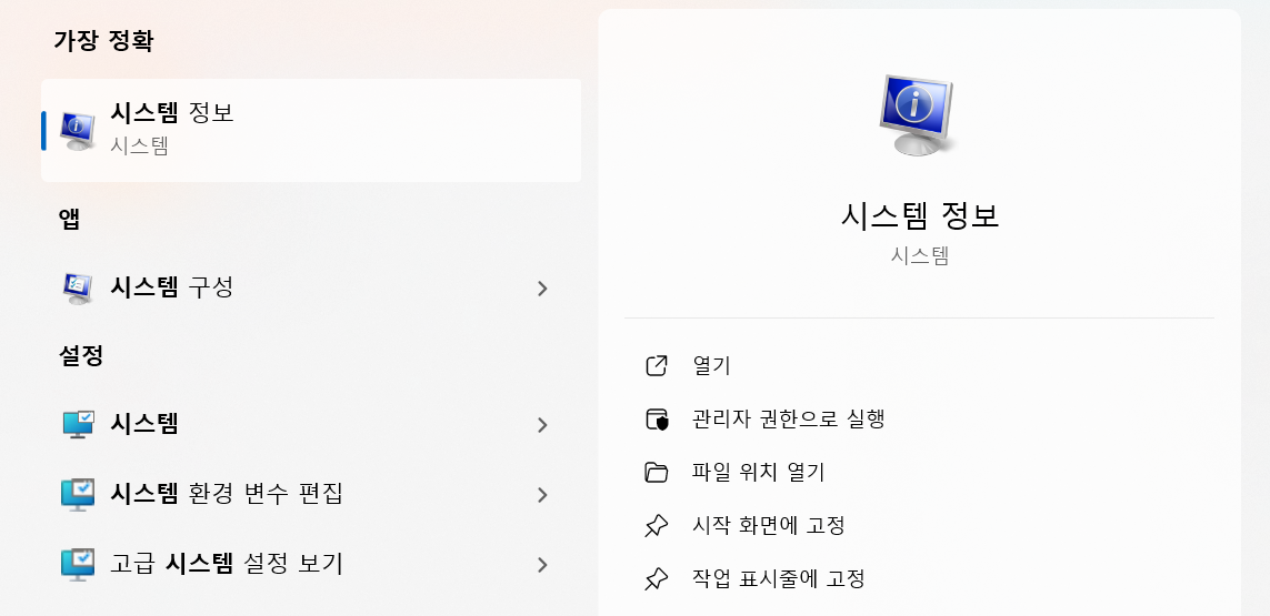 2) 윈도우 검색 : 시스템 정보
