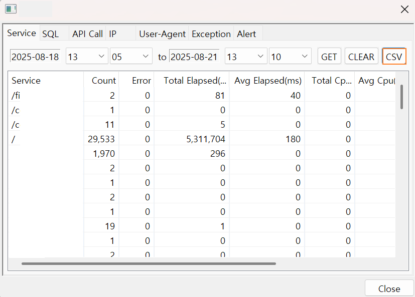 | Service Count | 서비스 호출 횟수 | |
