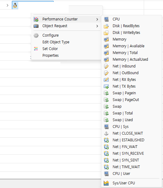 - 'Collector > Linux' 또는 '대상 Object 클릭 > Performace Counter'