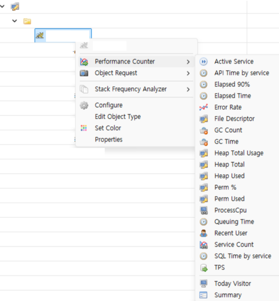 - 'Collector > Tomcat' 또는 '대상 Object 클릭 > Performace Counter'